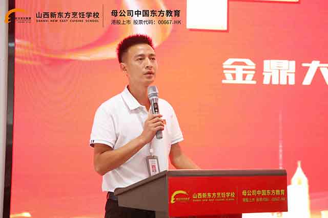 烘焙品牌,让你们在校园里就能接触行业前沿,毕业就能直接上岗。”他看向台下的毕业生,语气坚定,“我希望你们记住,技能是你们最硬的‘底气’——别人毕业还在投简历、焦虑就业时,你们已经带着‘真本事’走进优质企业,这就是职校生的优势,也是山西新东方学子的竞争力。未来,要守住匠心、持续学习,在岗位上做出成绩,为餐饮行业添砖加瓦!”